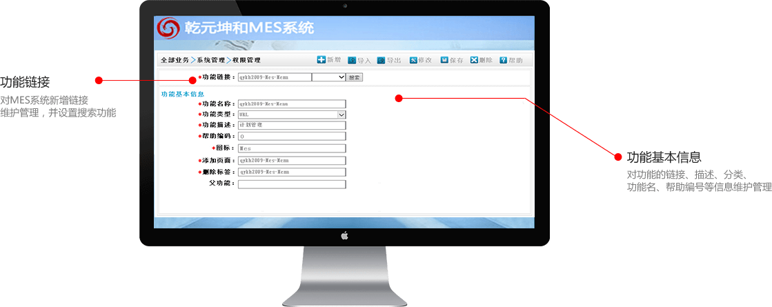 乾元坤和MES系统权限管理是对系统中新增的功能信息管理,